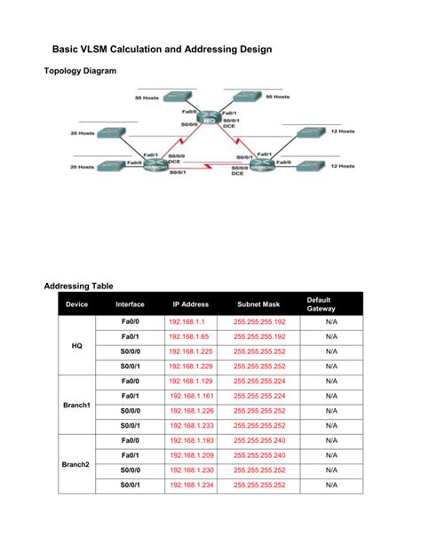 Download Basic Vlsm Calculation And Addressing Design Answer Doc